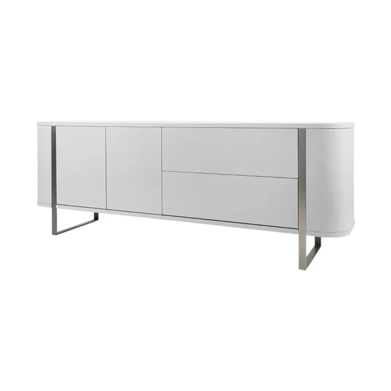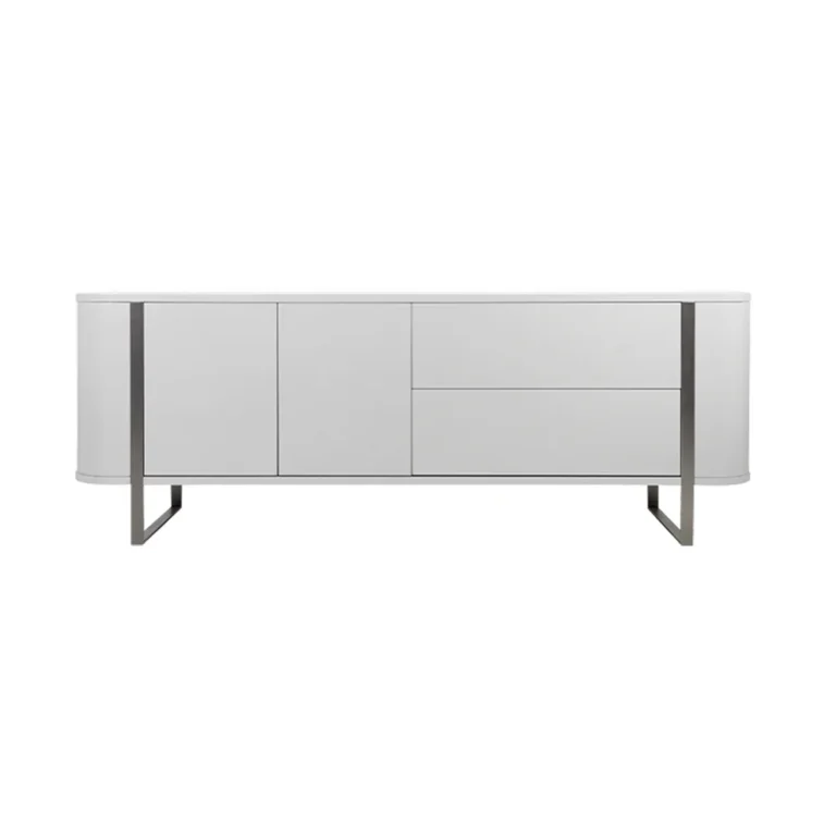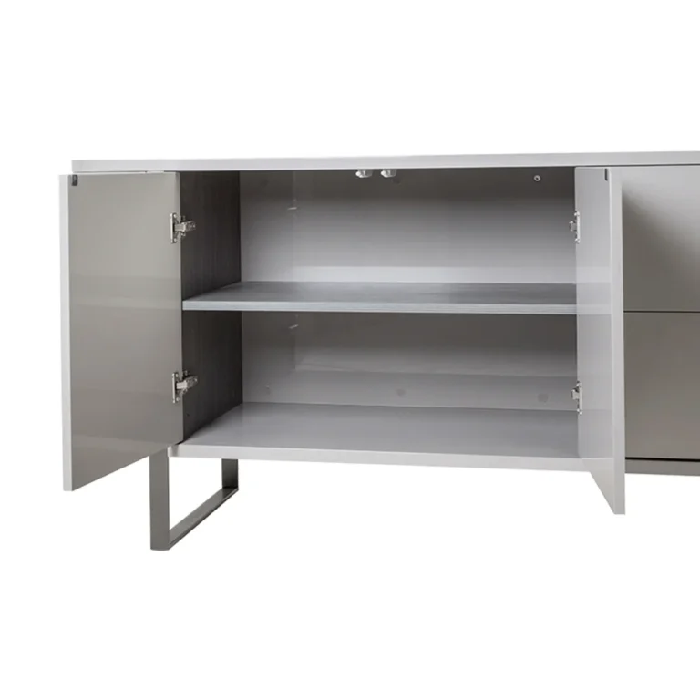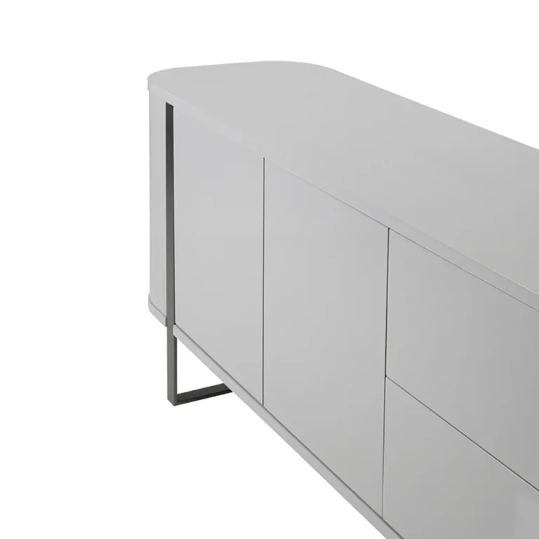 ไซด์บอร์ด PANIA โครงไม้ ปิดวีเนียร์สีเทา ขาสแตนเลสปัดเงา